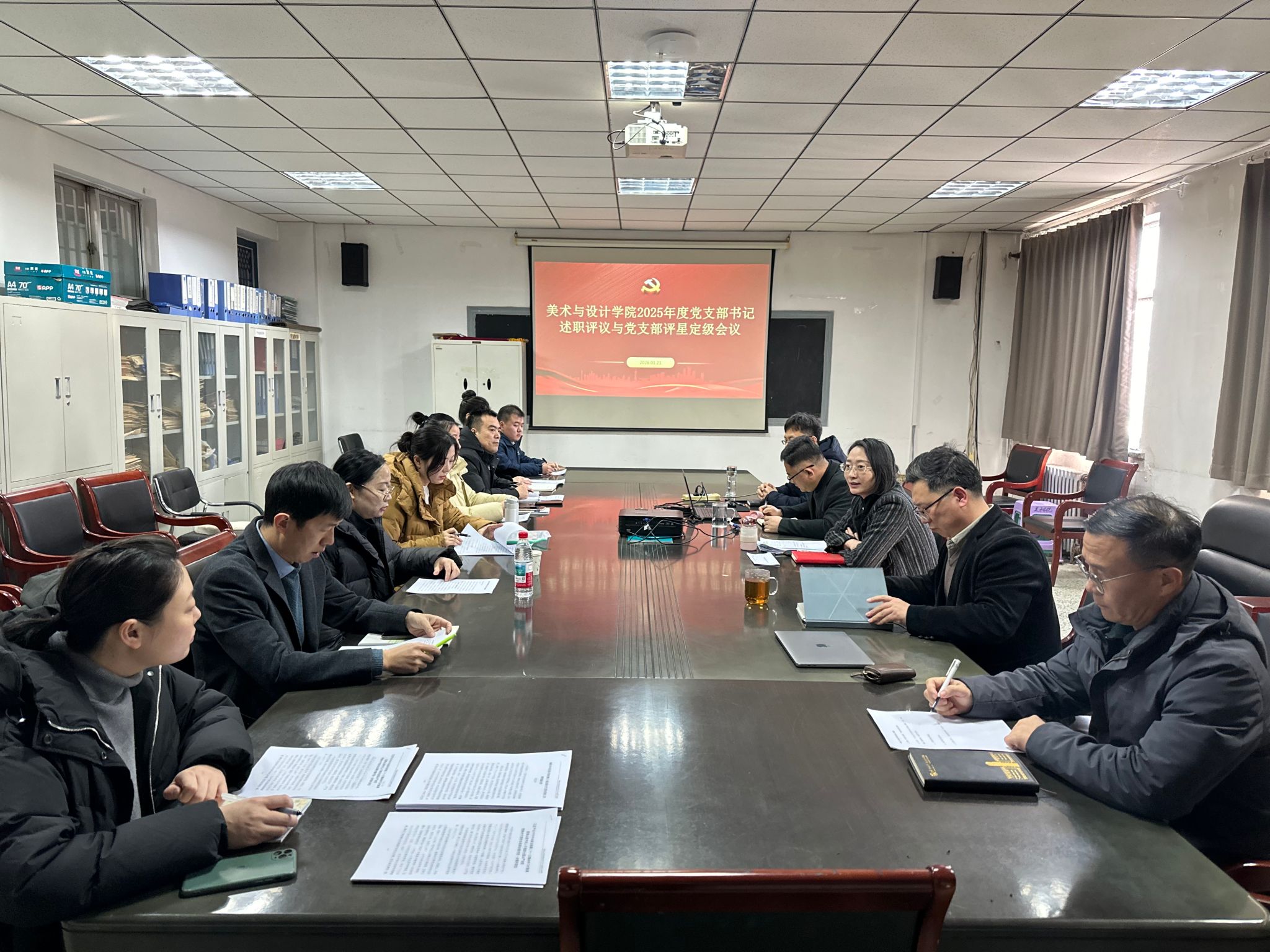 1月21日,美术与设计学院党委组织召开2025年度党支部书记述职评议和党支部评星定级会议。学院党委书记陈春锋主持会议,学院党委成员、全体党支部书记及组织员参加会议。